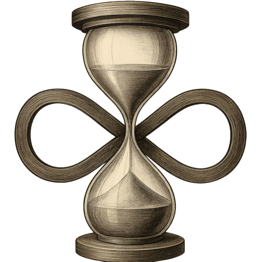Flowing through the hoaurglass is the infinity symbol, which embodies hope, faith, and the everlasting life and impact made possible through compassionate action and spiritual support. Through faith and service, what seems finite becomes infinite.
